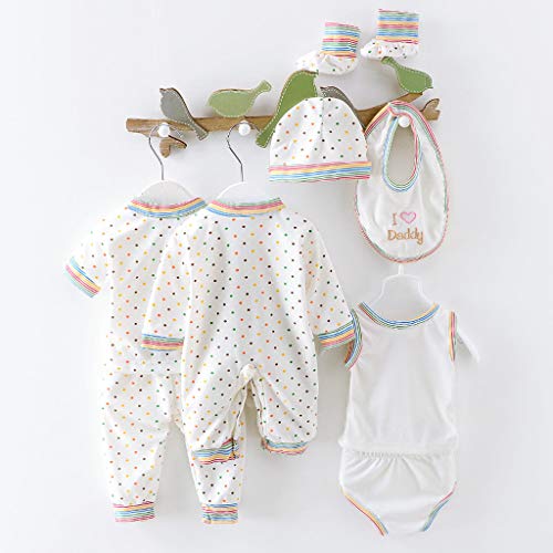 Specification: 5Pcs Pasgeboren Baby Pyjama Set Jongen Meisje Cartoon Lange Mouw Tops+Hoed+Broek+Bib Outfit Set Baby Kids Nachtkleding…