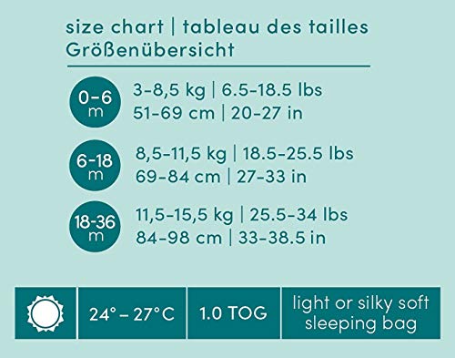 aden + anais essentials’ 1.0 tog slaapzak kan niet boven boven worden geschopt door kleine tenen en doet weg met losse dekens in het kinderbed, waardoor een rustige nachtrust ontstaat voor baby en jou. Gemaakt van een enkele laag zachte, ademende mousseline, van 100% katoen, helpt het open weefsel van de slaapzak het risico op oververhitting te verminderen en biedt precies de juiste hoeveelheid comfort tijdens zomeravonden en overdag dutjes. gemaakt om over pyjama te worden gedragen, kan het ook gelaagd worden met warmere nachtkleding voor koelere temperaturen.