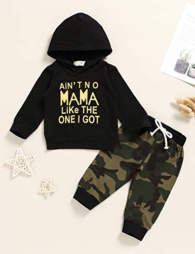 Stijl: schattig en grappig. Gedrukt met “AiN’t No MAMA LiKe der Eine, die ik heb”. Hoodie met lange mouwen en modieuze legergroene camouflage broek, royale kleurafstemming, goed voor de presentatie van goed uitzien!