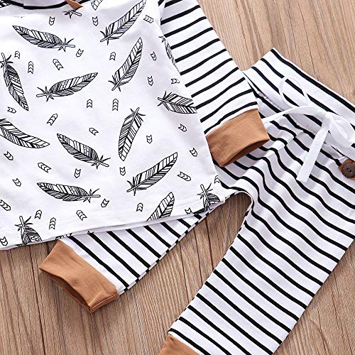 Mooie veren print en gestreepte broek, stijlvol, schattig, afgestemd op je kleine baby, maken kinderen mooier.