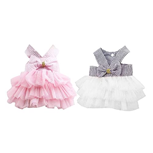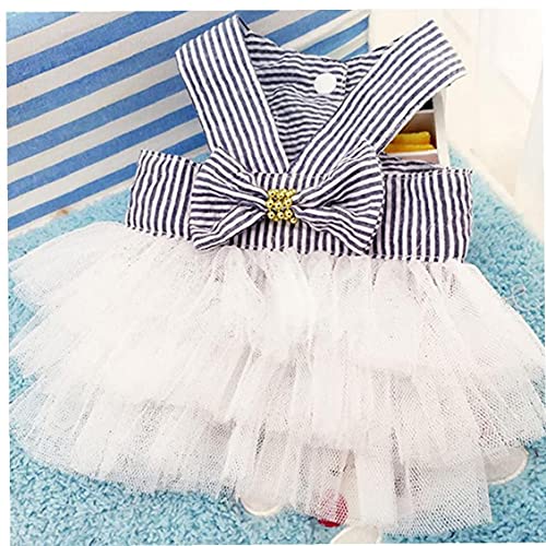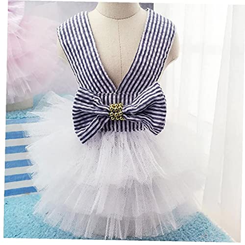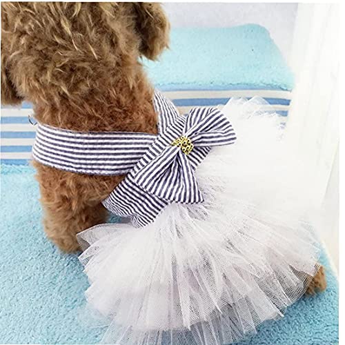 Hond jurk met gestreept patroon is comfortabel voor uw kleine hond of kat om te dragen. Puppy mesh rok met een grote en leuke boog en mesh ontwerp is mooi, het maken van uw leuke hond of kat aantrekkelijker in het park. Pet feestjurk dagelijks zonnebrand van uw huisdier in de hete zomer te voorkomen.