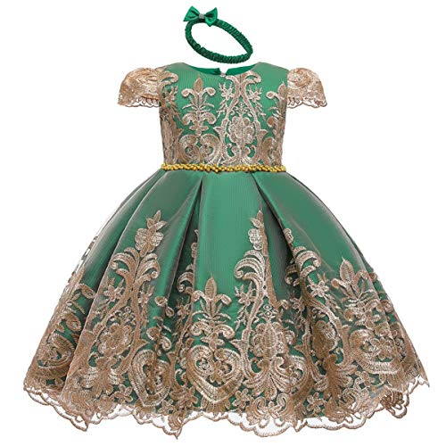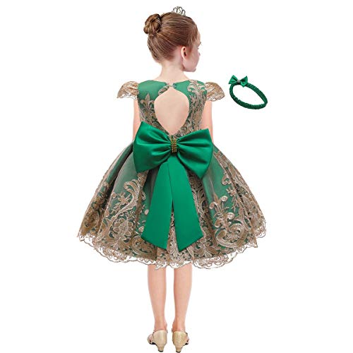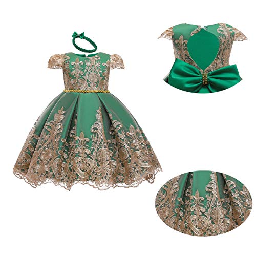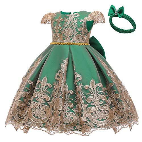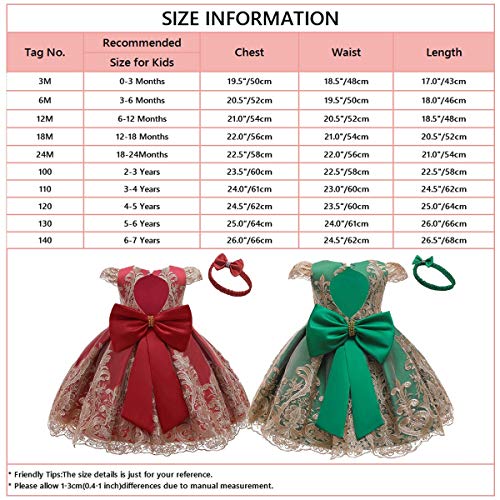 Specification: HOIZOSG Baby Meisjes Doop Jurk Kids Verjaardag Bruiloft Prom Geborduurde Kant Doop Strik Tutu Jurk w/Hoofddeksels