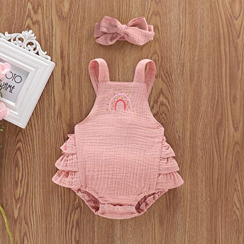 Rompertje voor pasgeborenen, met ruches, mouwloos, jumpsuit, halter, regenboogbody, met hoofdband, set