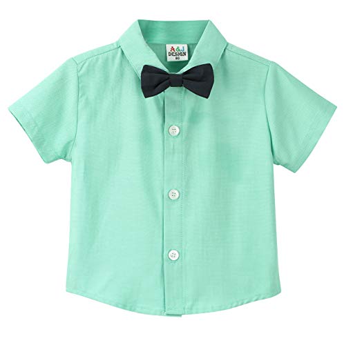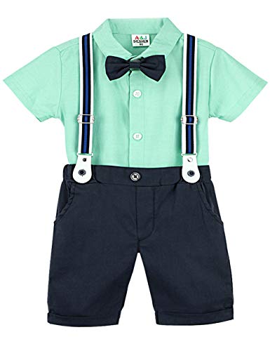 Specification: mintgreen Baby Jongen Heer Kleding Set Korte Mouw Vlinderdas Shirts Jarretel Broek Trouwpak, Maat: 1-4 Jaar