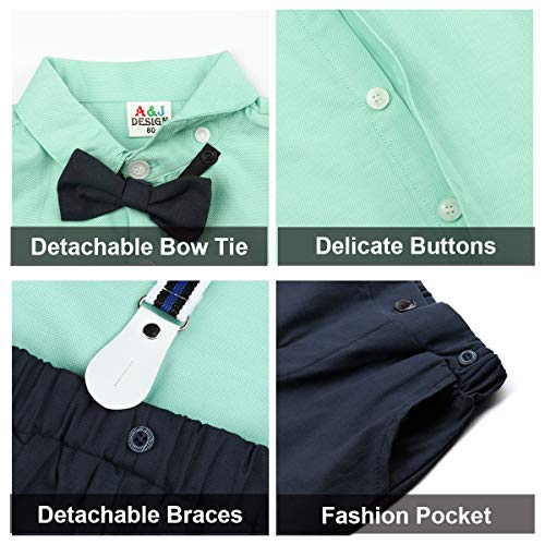 mintgreen Baby Jongen Heer Kleding Set Korte Mouw Vlinderdas Shirts Jarretel Broek Trouwpak, Maat: 1-4 Jaar