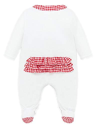 Pyjama met lange mouwen voor baby’s. pyjama met voeten, ronde hals met contrasterende details drukknoopsluiting zachte stretchkatoen. Decoratie: decoratieve applicaties, patroon op de voorkant, glitter, decoratieve ruches voor meisjes.