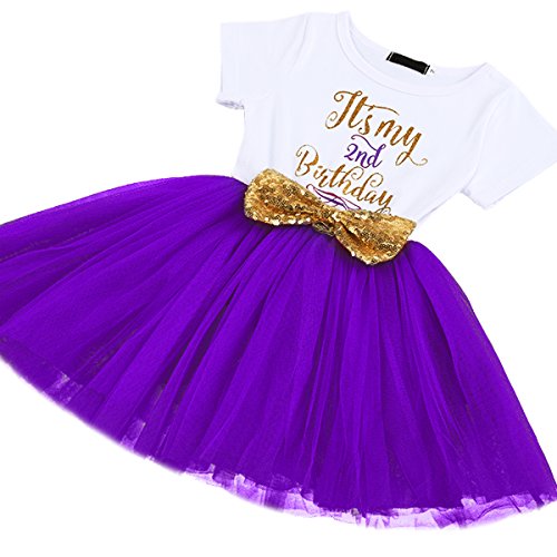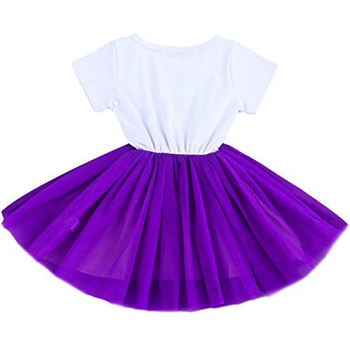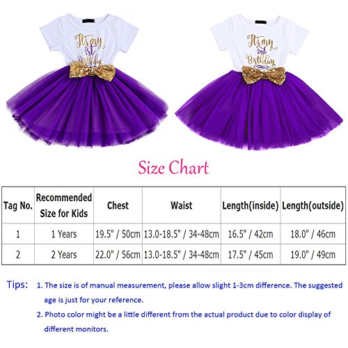 ✿ Uniek design: ronde hals met korte mouwen en chique, glinsterende, glanzende letters “My 1st Birthday”, “1”, “2”, “3” en schattig cartoon-patroon, stijlvol en betoverend. Elastisch tailledesign, versierd met glinsterende pailletten-strikknopen, stijl totaal bretels, wit en roze/paars/blauw, kleur tule rok, rok met ademende meerlaagse tule tutu-design, perfect bij de zachte zoom, beter bij het lichaam van je baby passen en gemakkelijk te dragen en uit te trekken.