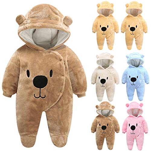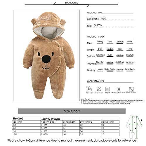 Specification: Pasgeboren Baby Unisex Voet Romper Winter Jas Voorkant Snaps Warme Jumpsuit Hoodie Leuke Beer Sneeuwpak