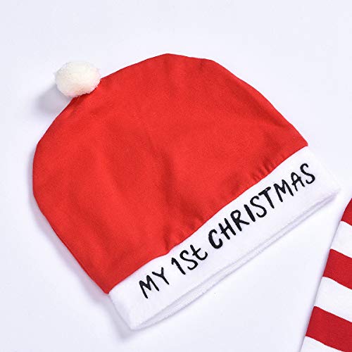 Stijl: strik en gestreepte romper met opgedrukte Vrolijk Kerstfeest en letterlijk mijn eerste kerstprint op de hoed! Het is geschikt voor dagelijkse kleding van je kinderen, speciale gelegenheden, Kerstmis, verjaardagen, foto’s.