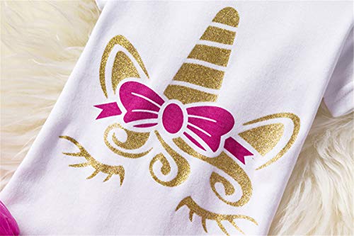 Romper van katoen, een eenhoornpatroon, 1 bedrukte voorkant. uniek en schattig. de regenboog corlorful tutu met meerdere lagen. een gouden strik voor de tutu. Het pakket wordt geleverd met een eenhoorn bloemenhoofdband.