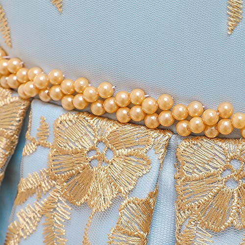 Het bovenste deel van deze jurk is boven de taille versierd met parels. Elegant vintage bloemenpatroon, mooie strik aan de rechterkant, slijtvaste ritssluiting, strik op de achterkant. Onder de lagen zit een afneembaar koord, dat de jurk voller en mooier maakt.