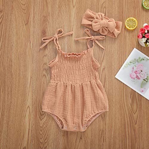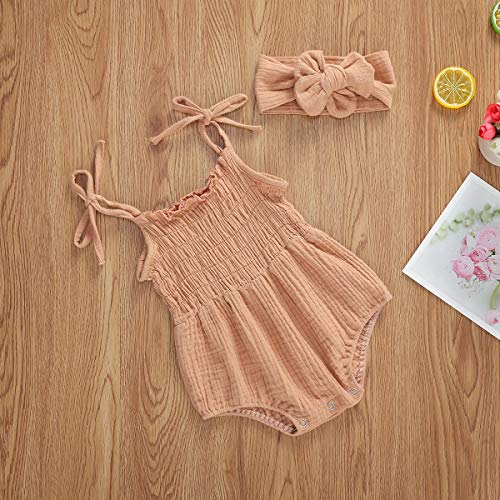 Zomerbody voor meisjes, met haarband, overall met knopen, effen